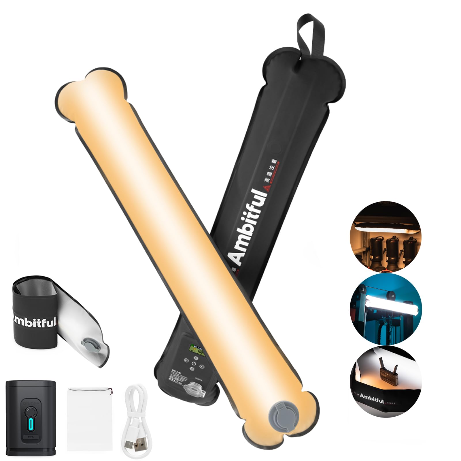 - Il design flessibile permette di gonfiarlo per trasformarlo in una luce a stick da 60 cm o di sgonfiarlo per una luce alta flessibile, facilitando la modellazione e l'illuminazione.