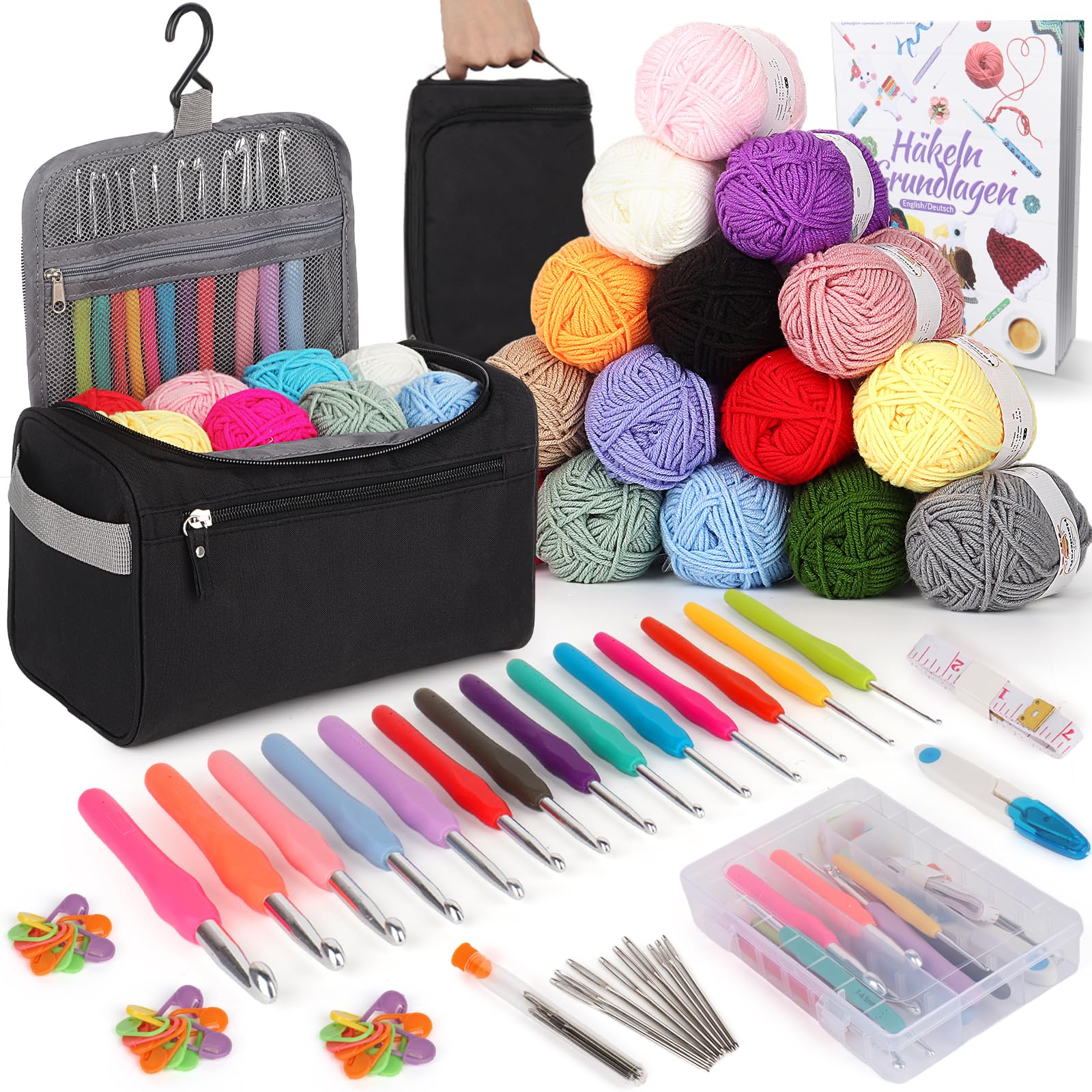 - Set di uncinetti portatili all-in-one: nella pratica borsa per il trasporto di grandi dimensioni, è possibile riporre tutti i vostri uncinetti, accessori per uncinetto e gomitoli di lana. C'è anche una scatola trasparente per accessori all'uncinetto in cui puoi riporre tutti i tuoi uncinetti per organizzarli ed evitare di perderli. In questo modo avrete sempre tutto sotto controllo a casa o in viaggio. Questo set all'uncinetto per principianti è anche un accessorio da viaggio indispensabile per gli appassionati di uncinetto.
