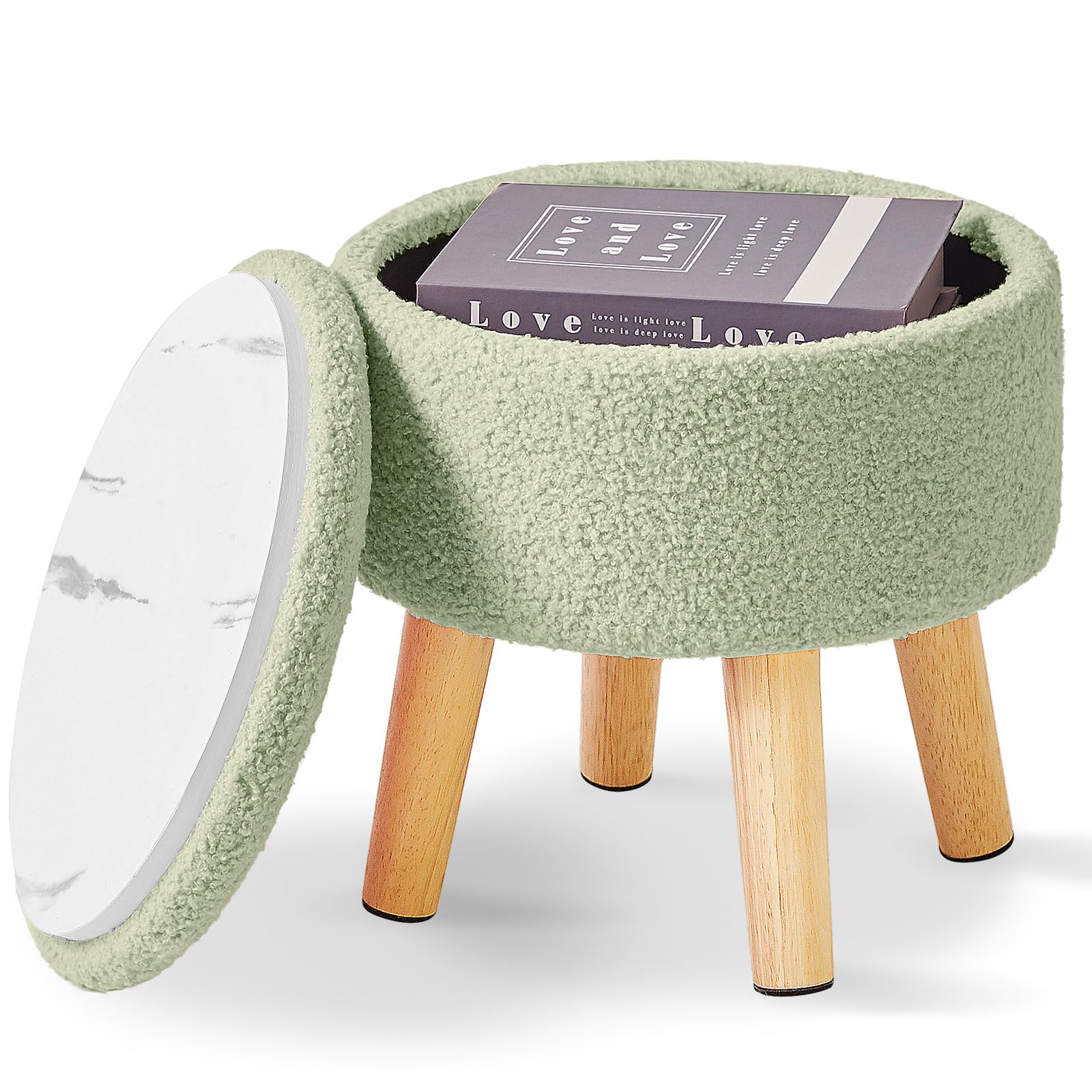 Ibuyke Poggiapiedi Ottomano Rotondo con Contenitore, Verde