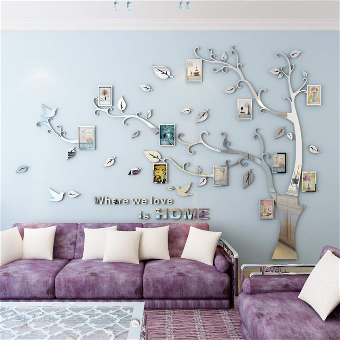 3D Albero Adesivi Murali Cornici per Foto, Argento XL
