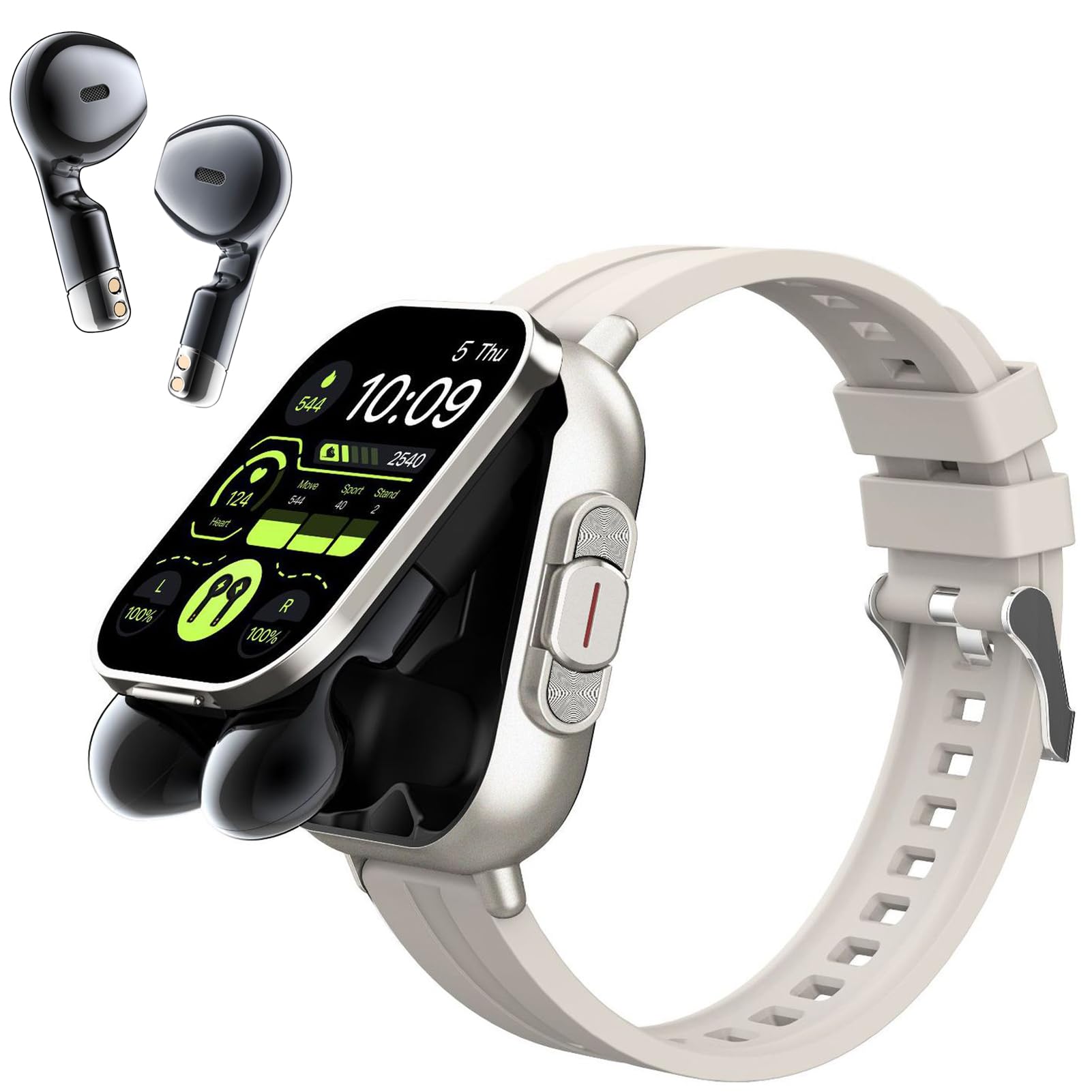 - Questo innovativo dispositivo 2 in 1 integra cuffie wireless in uno smartwatch, offrendo praticità senza precedenti per l'allenamento o gli spostamenti, permettendo di godere di musica e chiamate di alta qualità.