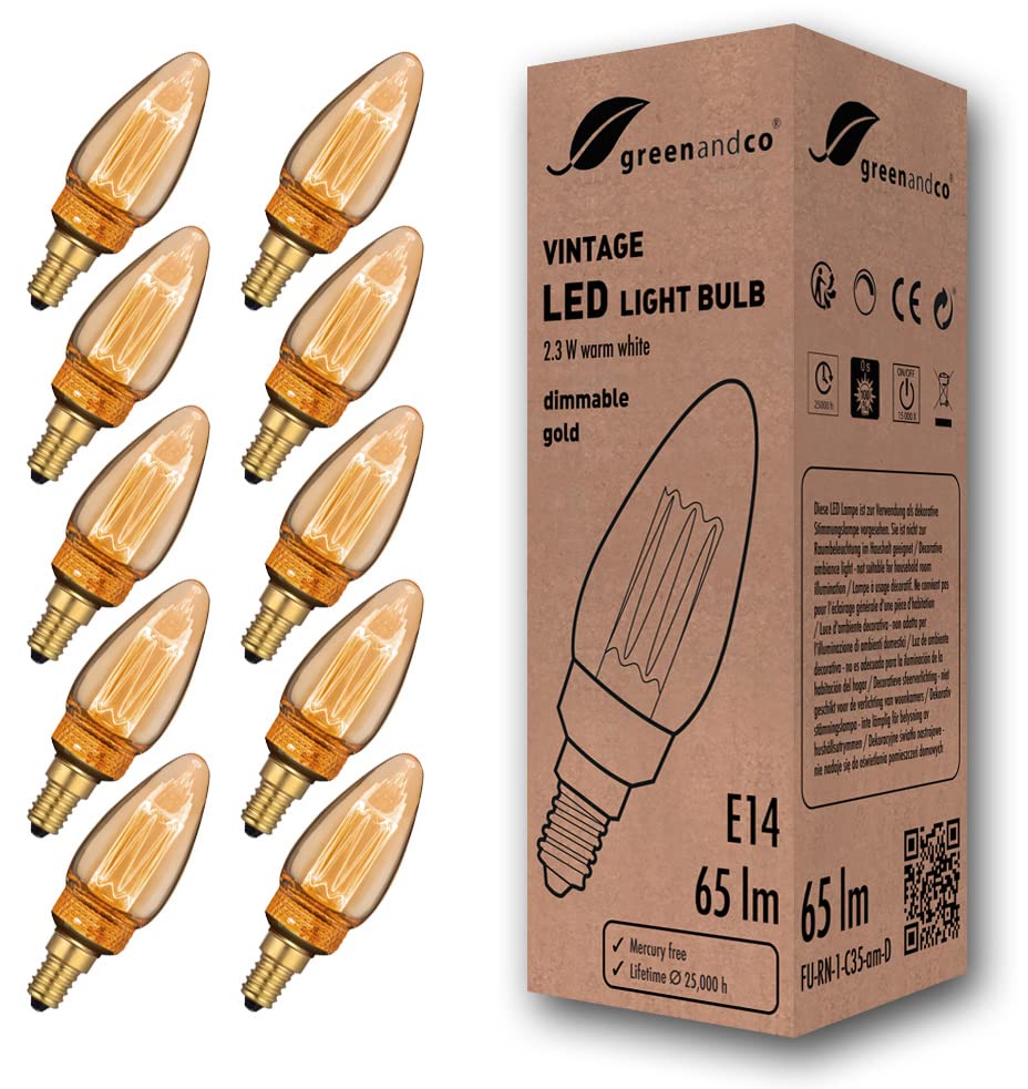 Greenandco® 10x Lampadina LED Vintage Dimmerabile E14 C35 2,3W