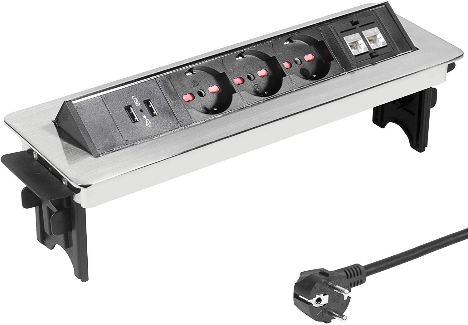 - L'installazione è rapida e l'utilizzo semplice; il blocco presa integrato è compatibile con la maggior parte degli apparecchi domestici ed elettronici, contribuendo a mantenere il piano di lavoro ordinato.