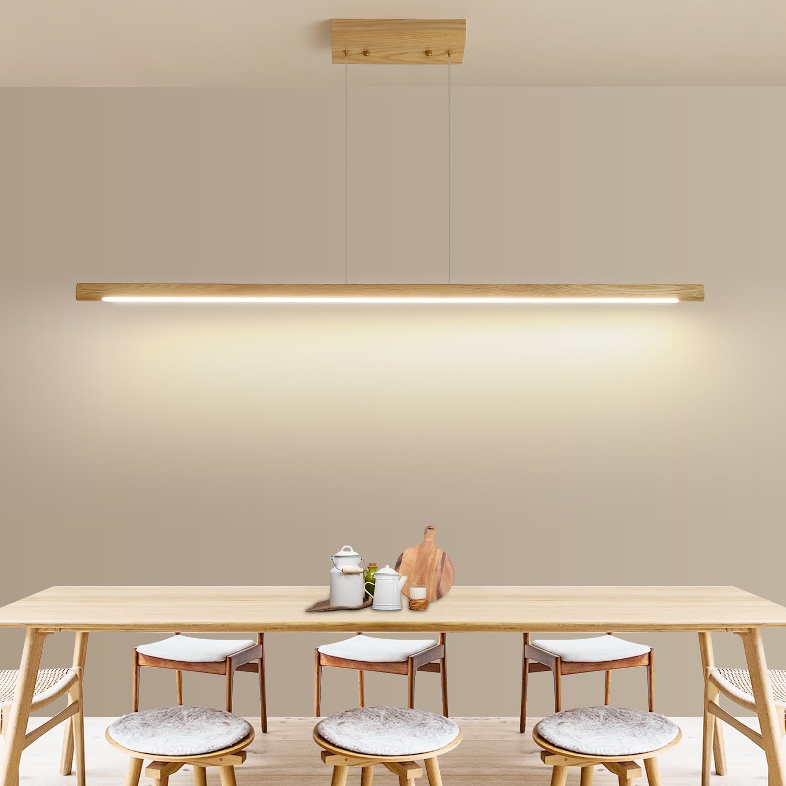 - Alta Qualità e Lunga Durata: La luce sospesa lineare a LED utilizza legno di frassino naturale, la fonte luminosa a LED all'interno della lampada è estremamente efficiente dal punto di vista energetico, consumando fino al 80% di energia in meno. Venatura del legno naturale, che rivela la bellezza della natura e dell'originalità, è una scelta salutare. Il concetto di design basato sulla natura è in grado di avvicinare le persone alla natura e dar loro un senso di intimità.