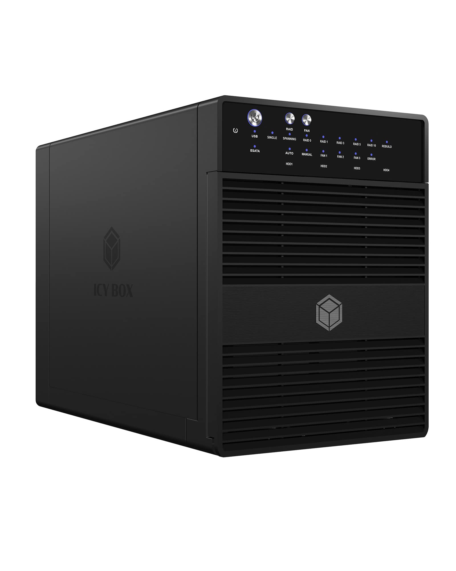 - I LED di stato integrati forniscono un monitoraggio costante del funzionamento, della ventola, delle interfacce, dell'accesso ai dischi rigidi e di eventuali errori, tenendoti sempre informato sullo stato del dispositivo.