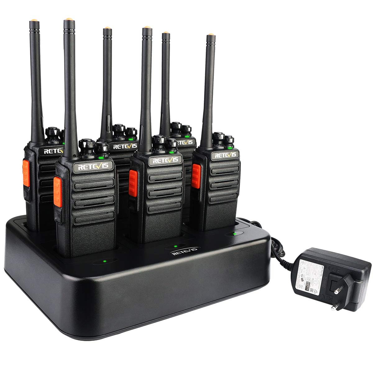 - Il caricatore a 6 slot incluso permette di ricaricare contemporaneamente fino a sei walkie talkie, offrendo efficienza e sicurezza grazie a protezioni multiple.