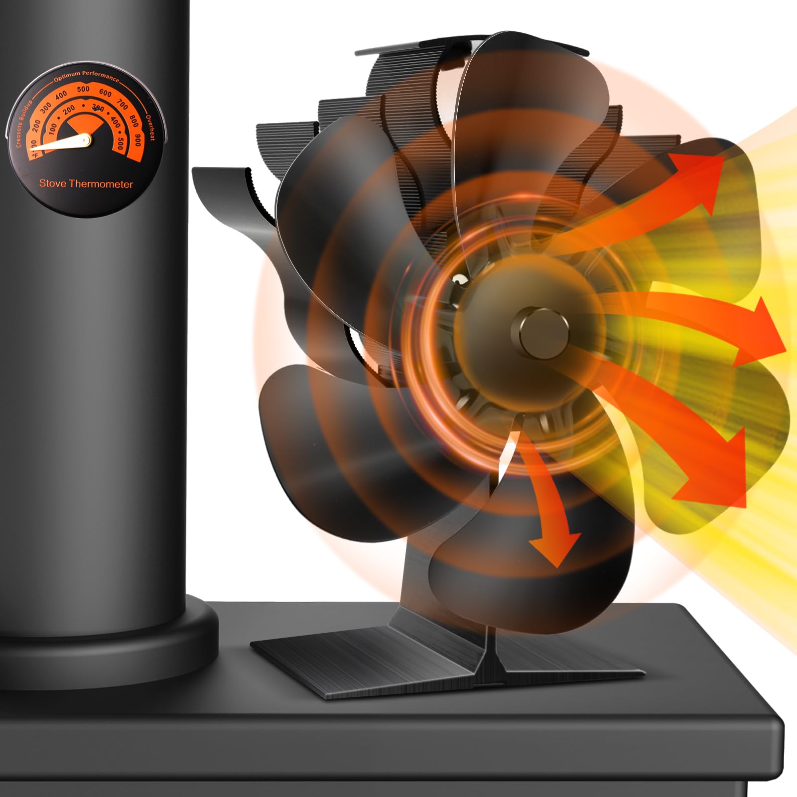 Lvelfe - Ventilatore per Caminetto 6 Pale Senza Elettricità