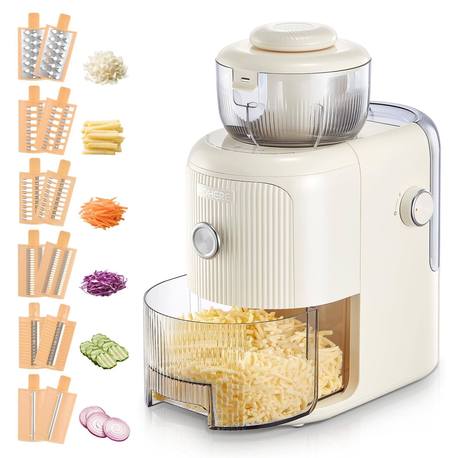 Fohere Grattugia Elettrica Multifunzionale 50W, Bianco