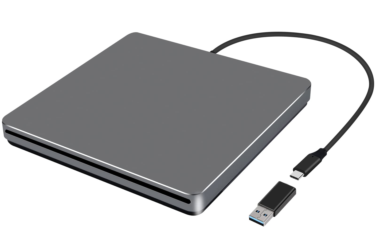 - Questa unità CD/DVD esterna presenta un design elegante e compatto con un cavo USB-C integrato, che si collega direttamente alla porta USB-C del tuo Mac/MacBook Air Pro/laptop, eliminando la preoccupazione di perdere cavi separati.