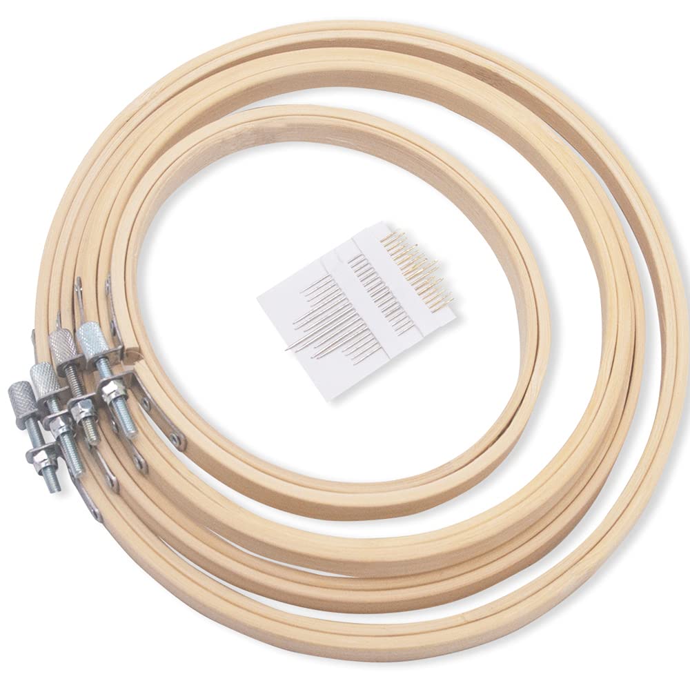 - Il kit include quattro cerchi da ricamo con diametri approssimativi di 13 cm, 16 cm, 18 cm e 20 cm, accompagnati da 16 aghi da ricamo con cruna dorata.