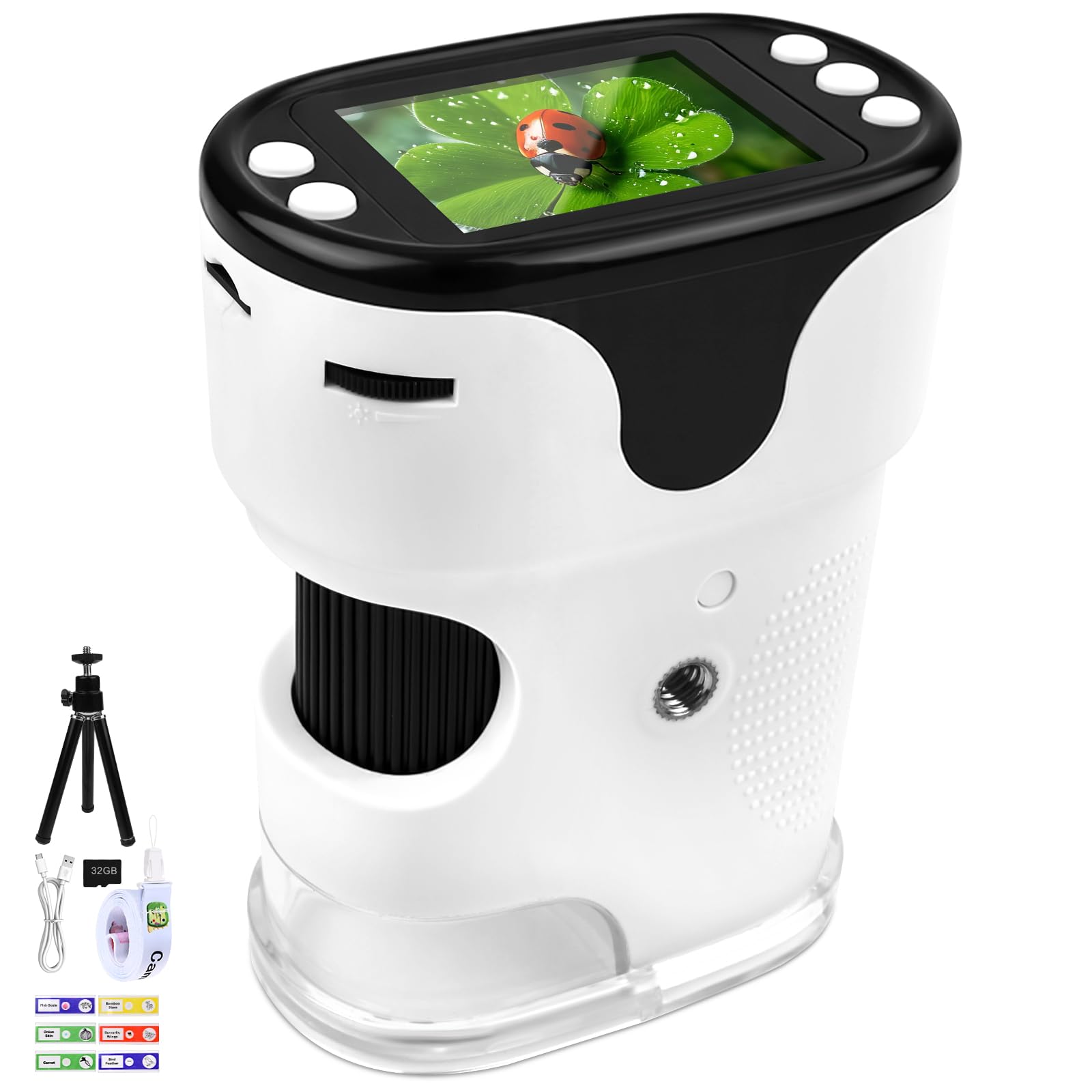 - 【Memorizzazione di Foto e Video】 Include una scheda TF da 32GB per archiviare le scoperte microscopiche. Ideale per registrare esperimenti scientifici, esplorazioni naturali o progetti scolastici, consentendo di catturare ogni momento interessante. I contenuti possono essere esportati facilmente via USB su qualsiasi sistema Windows (XP/Vista/7/8/10/11) o Mac (11.0+).