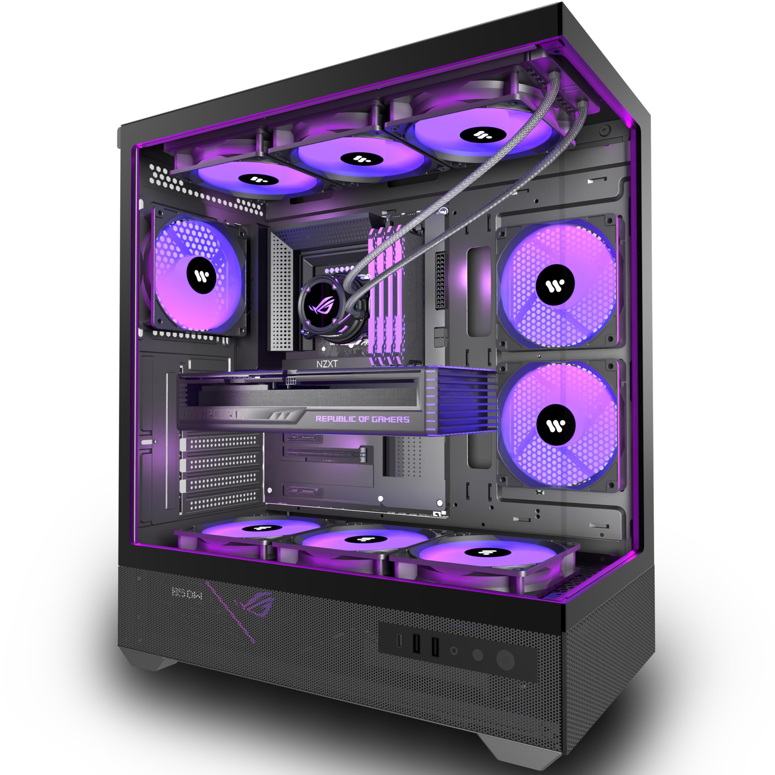 - [Super gestione dei cavi] --6 ventole per case ARGB richiedono solo 2 connessioni avanzate, riducendo i complessi processi di gestione dei cavi. ampio spazio dietro il vassoio della scheda madre per la gestione dei cavi nascosti.