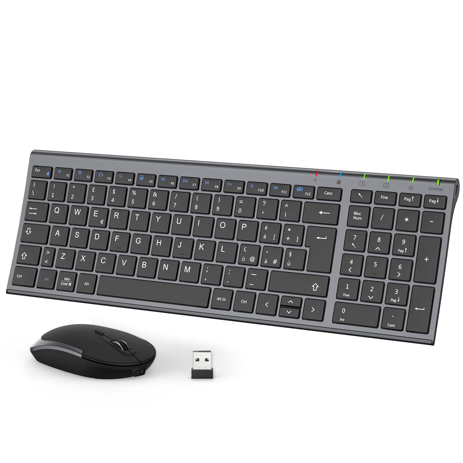 Iclever Tastiera e Mouse Wireless 2.4G, Grigio e Nero