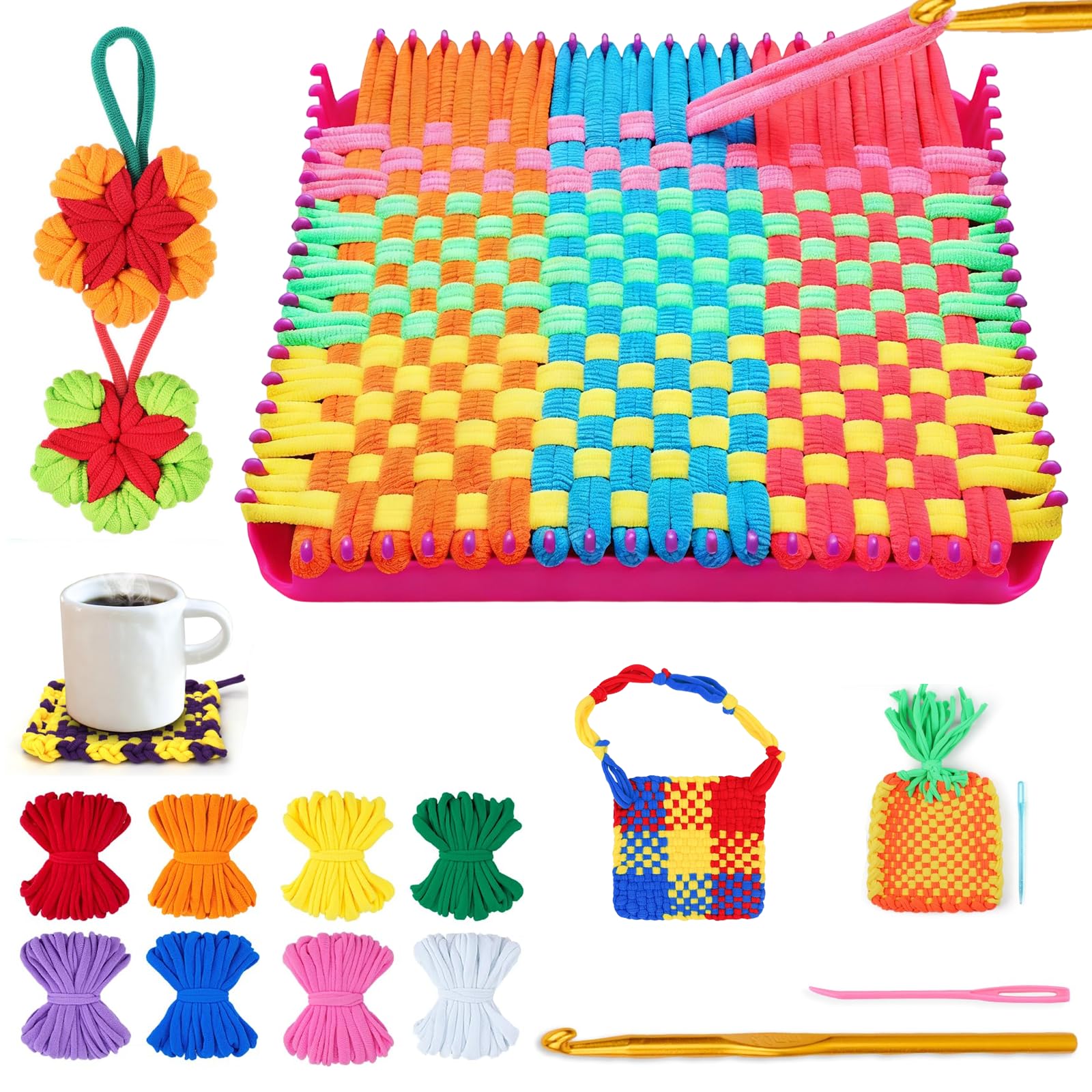 - Kit Completo e Pronto All'Uso: Nel pratico cofanato di stoccaggio trovi tutto l'occorrente: Telaio, filati, accessori per la tessitura. Questo tricotin kit completo offre infinite possibilità creative in un unico pacchetto.