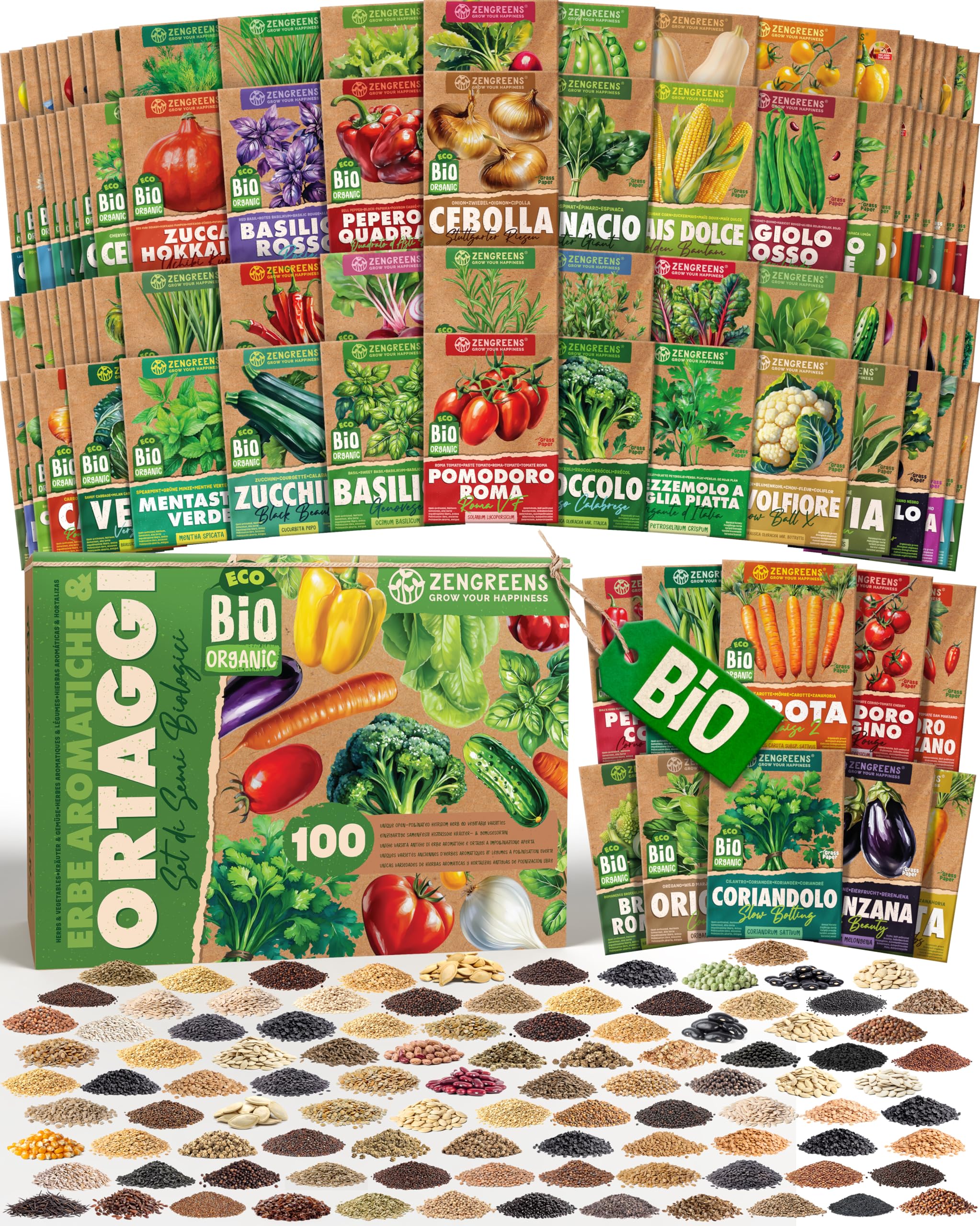 - Un'ampia selezione di 100 varietà di semi biologici di alta qualità per erbe aromatiche e ortaggi, garantendo un raccolto abbondante e diversificato.