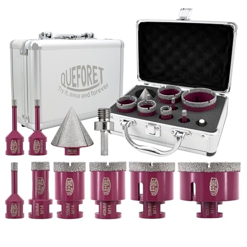 - Il set include 10 pezzi: 8 punte diamantate nei diametri 6/6/8/20/35/40/50/68mm, una punta per smussare da 0-50mm e un adattatore da filettatura M14 a gambo esagonale.