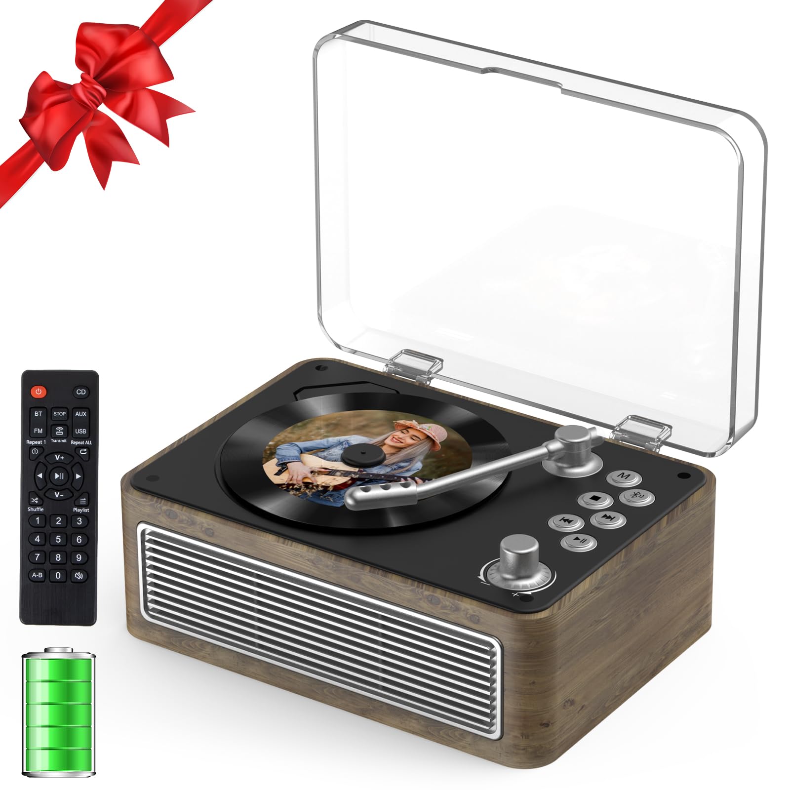 - 【Design Retro, un'Opzione di Regalo Ideale】Ispirato dai classici grammofoni, il lettore CD per casa Gueray presenta un design in legno retro con un interruttore per il braccio del piatto giratorio e una copertura antispolveri trasparente. Non solo può proteggere i dischi CD, ma anche aggiungere un tocco di nostalgia. La funzione di ripetizione A - B è particolarmente adatta per l'apprendimento delle lingue e le esigenze educative dei bambini. La sua estetica nostalgica unica lo rende un regalo eccellente per bambini, amici o famiglia. È perfetto per occasioni come compleanni, Natale o qualsiasi evento speciale.