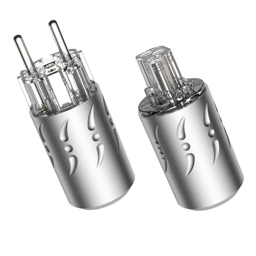 - Questo set di connettori Viborg High End HiFi include una spina Schuko VE512R (maschio) e una spina per dispositivi a freddo C15 VF512R (femmina), entrambi realizzati con conduttori in rame puro e corpo in lega.
