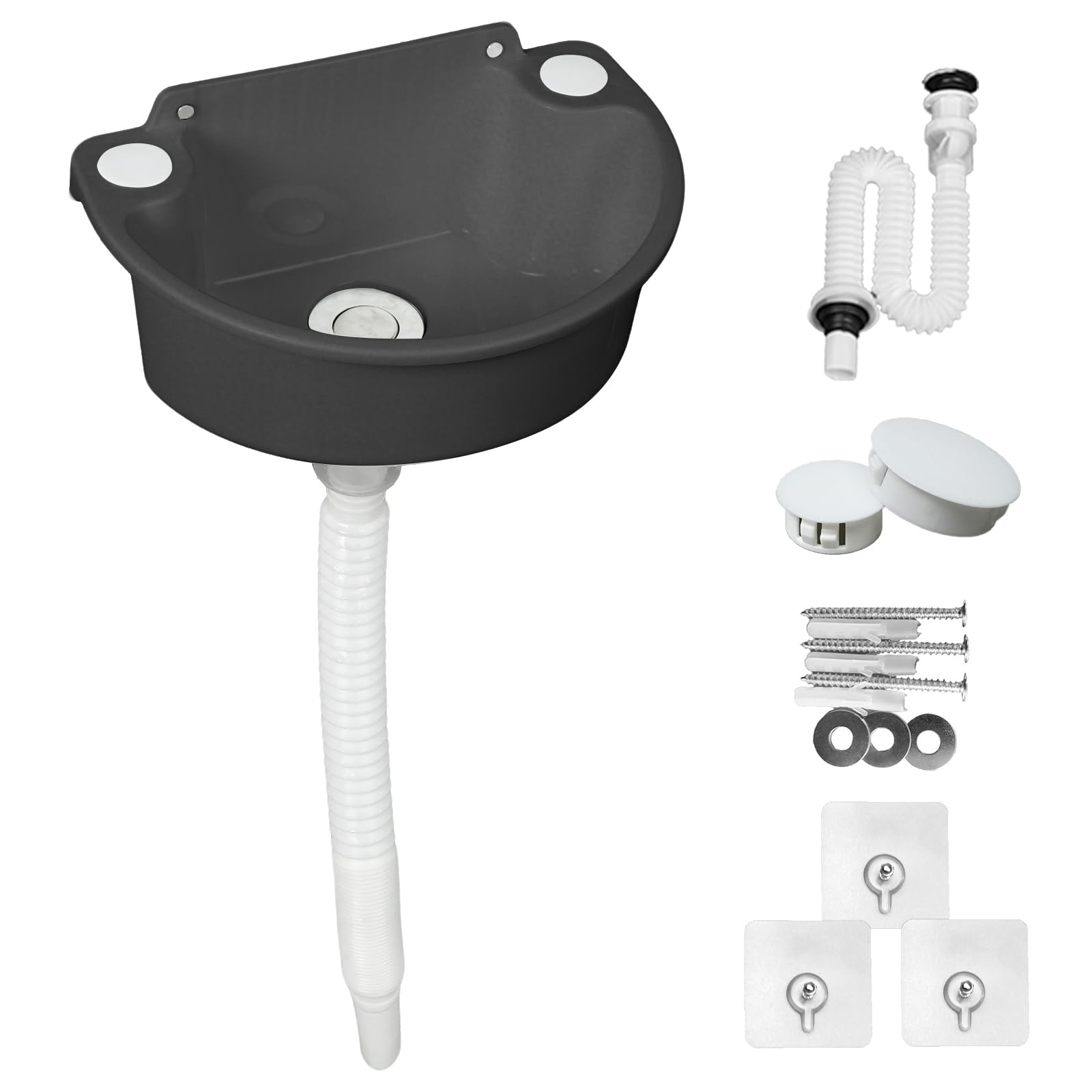Lavandino Semplice in Plastica con Tubo e Scarico, Nero