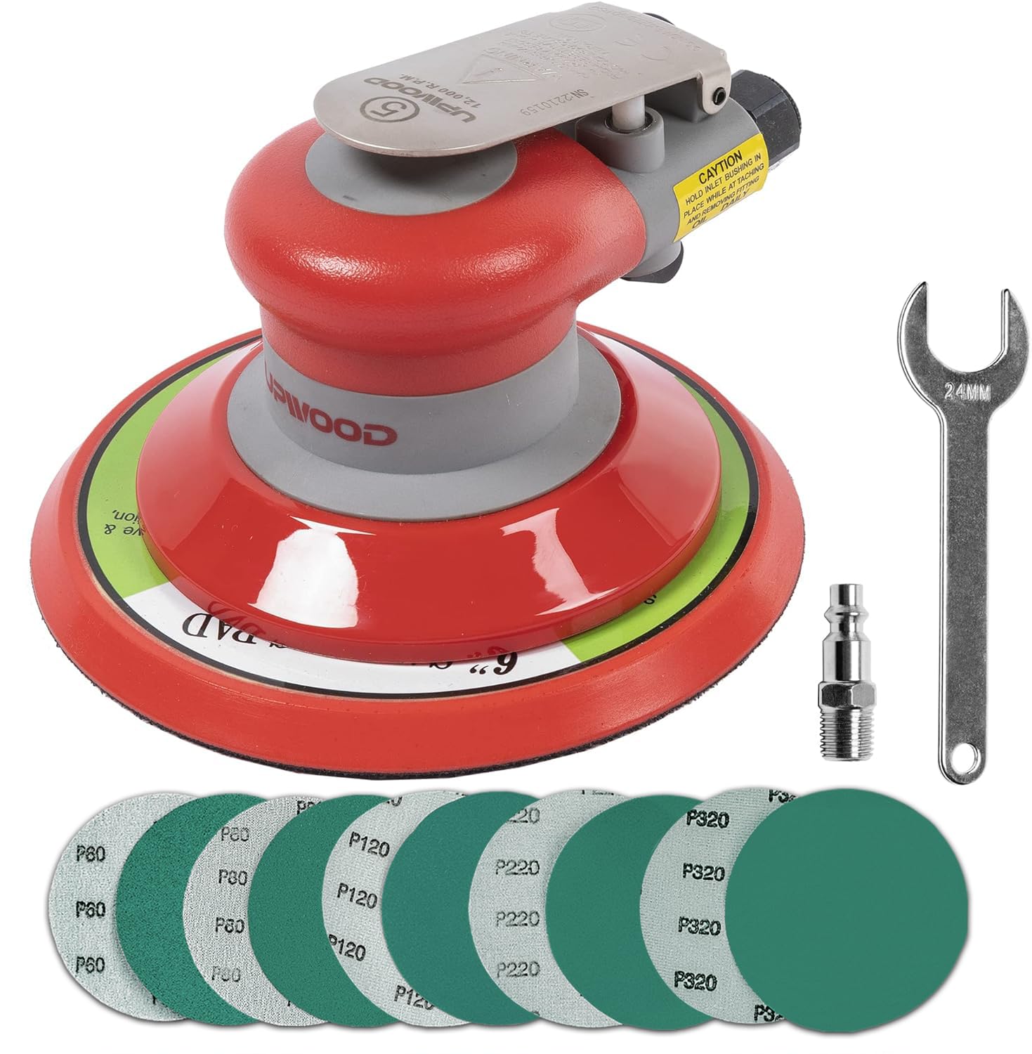 - Velocità libera: 12000 giri/min, Velocità regolabile, Consumo aria: 10.5CFM, Diametro orbita: 3/16", Pressione di esercizio: 90PSI