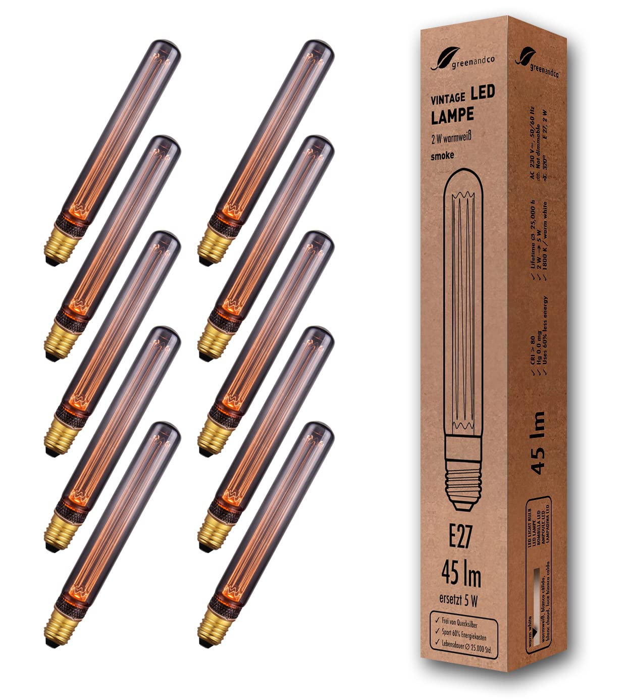 Greenandco 10x Lampadina LED Vintage E27 T30 2W