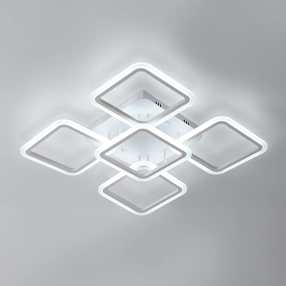 - Il design a due strati presenta cinque tonalità quadrate, disposte su due livelli, che conferiscono alla plafoniera un aspetto moderno e tridimensionale.
