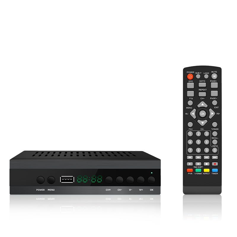 - La confezione include il set-top box DVB-T2, un telecomando (batterie non incluse) e il manuale utente. È disponibile un servizio di assistenza online 24 ore su 24 per qualsiasi domanda.