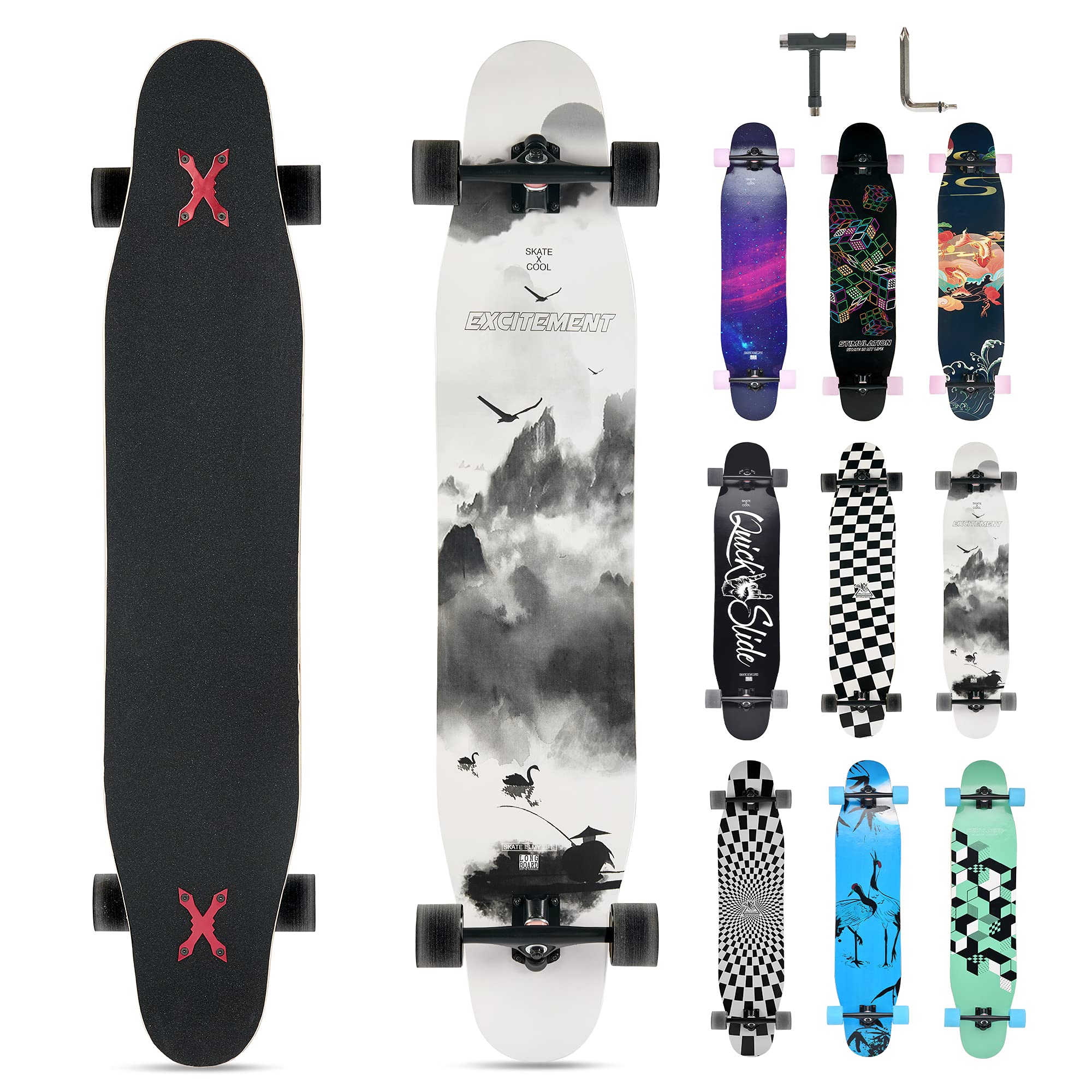 - ♠Nota: il longboard è completamente assemblato e non richiede ulteriore montaggio. È incluso un cacciavite per serrare le viti e garantire un uso a lungo termine. Indossare sempre dispositivi di protezione quando si utilizza la tavola per evitare lesioni