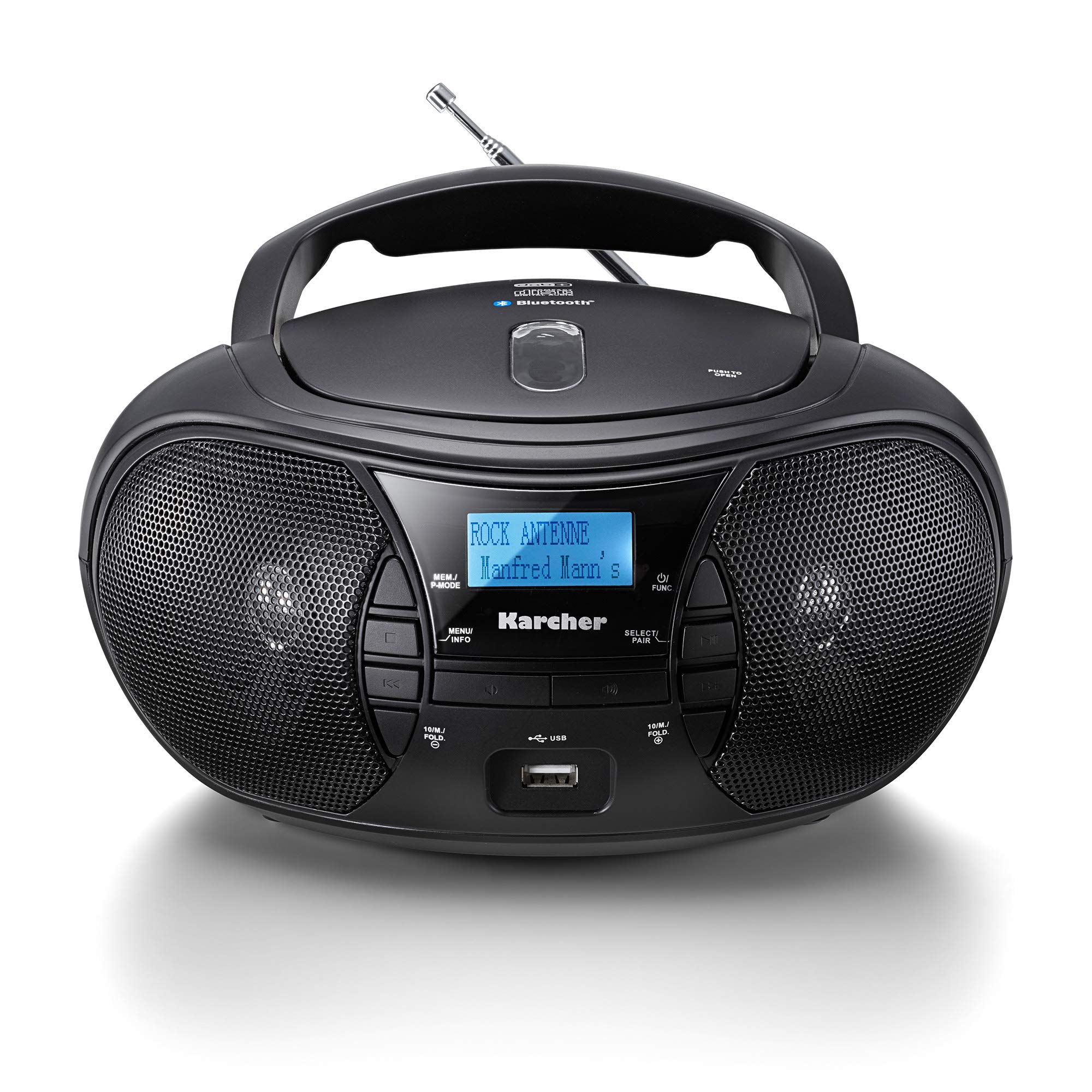 - Contenuto della confezione: radio CD Karcher RR 5028D in nero, cavo di alimentazione, istruzioni (DE/EN)