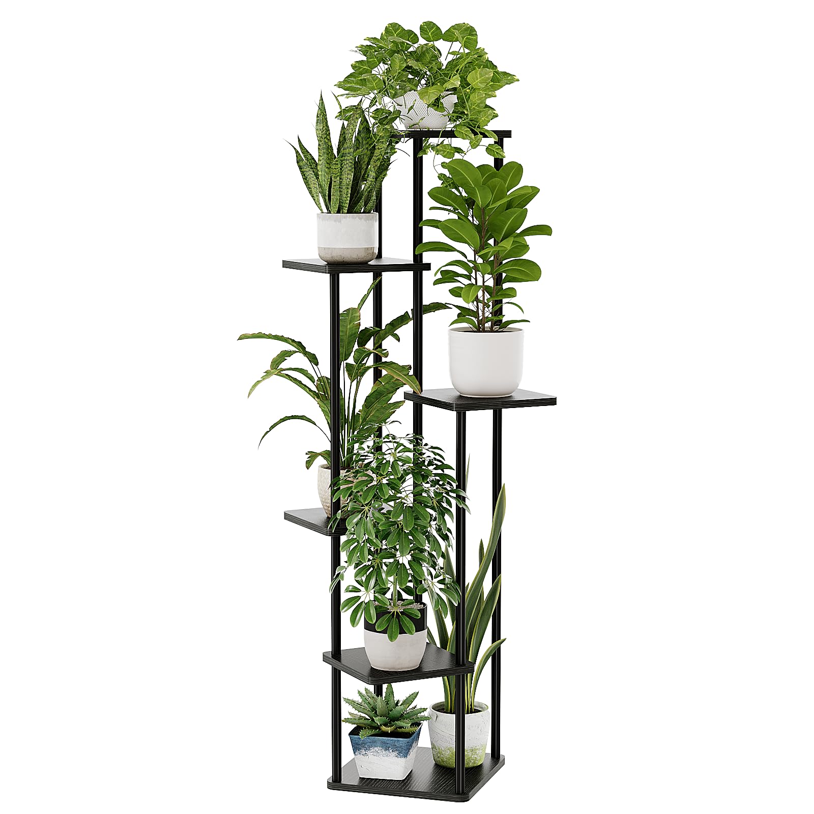 - Questo porta piante a sei livelli, con la sua elegante finitura nera opaca, conferisce un tocco moderno e sofisticato, adattandosi perfettamente sia agli ambienti interni che esterni contemporanei.