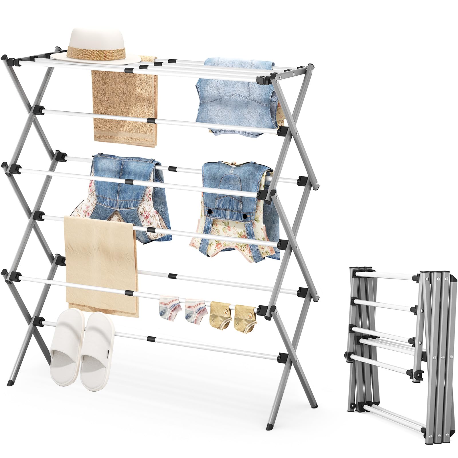- Stendibiancheria piccolo a 3 livelli, stendibiancheria pieghevole a 3 livelli, stendibiancheria a torre estensibile per interni ed esterni