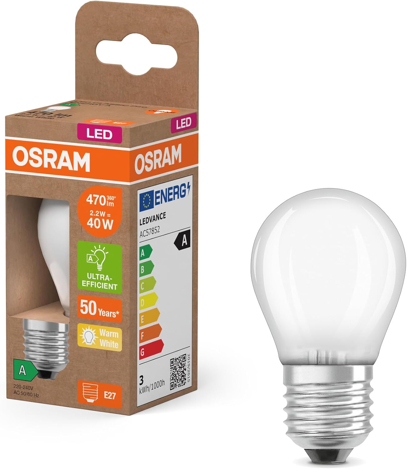 - RISPARMIO ENERGETICO: il basso consumo energetico della lampada con classe di efficienza energetica A protegge l'ambiente e il portafoglio in egual misura e contribuisce quindi a una maggiore sostenibilità.