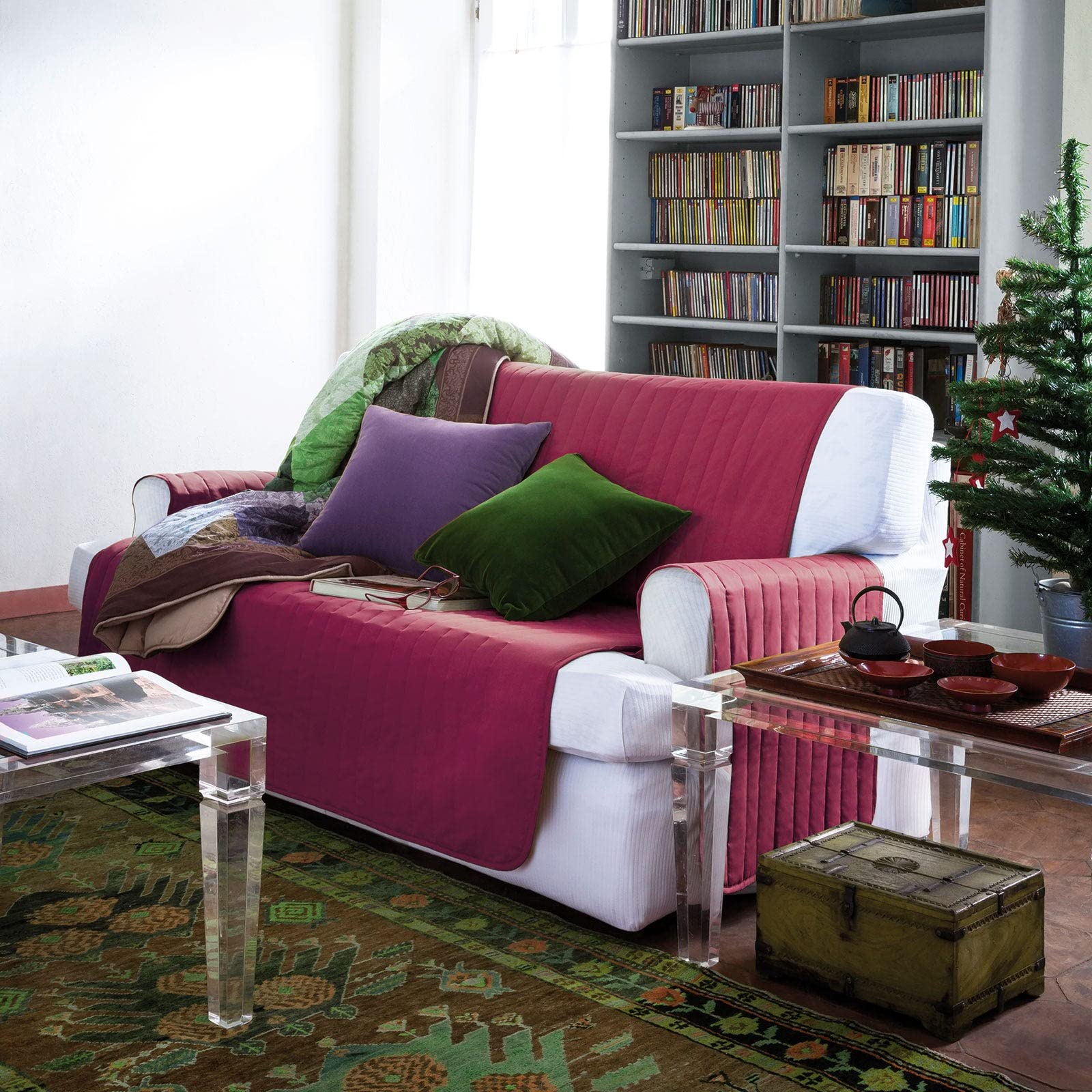 Caleffi Bicolor Copridivano Salvadivano, Cotone , Bordeaux, 2 Posti, 78212