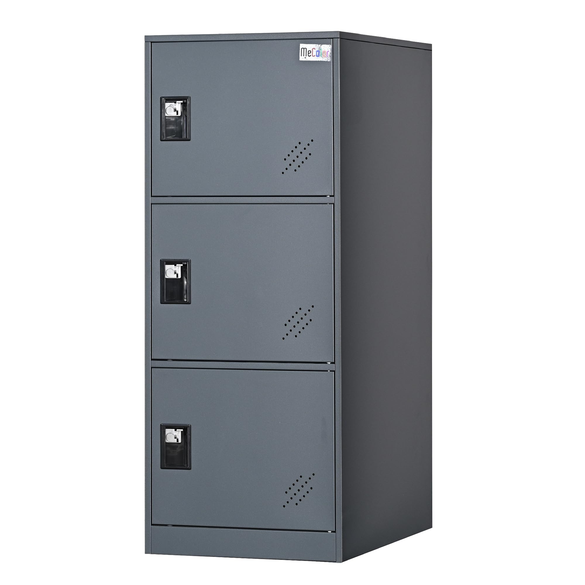 - Questo piccolo armadietto verticale è dotato di tre ante, ciascuna con un proprio lucchetto, permettendo di bloccare ogni scomparto individualmente con qualsiasi tipo di lucchetto.