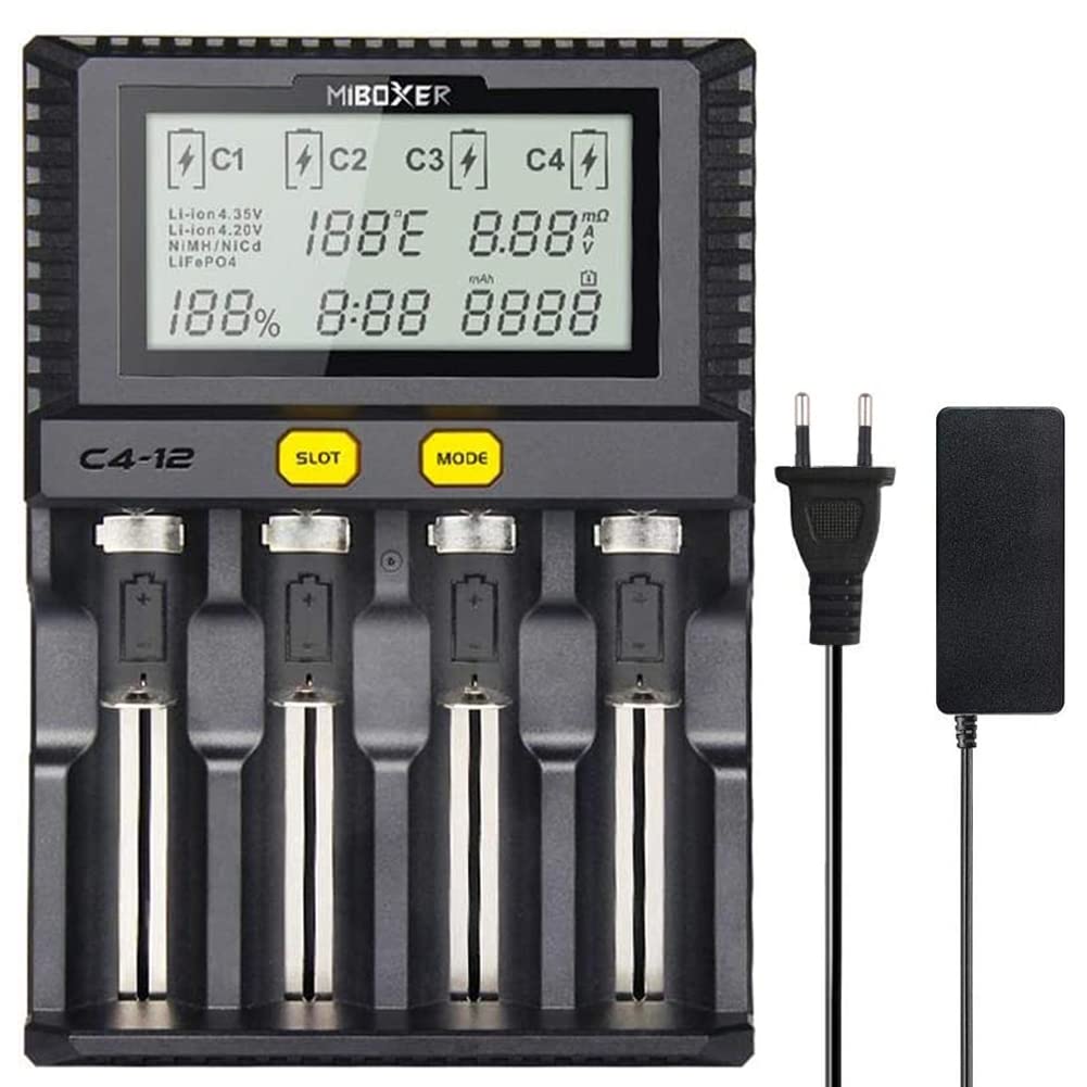 - Questo caricabatterie C412 offre una ricarica rapida fino a 3,0 A per slot, consentendo di caricare quattro batterie IMR da 3000 mAh all'85% in soli 50 minuti. Per batterie Ni-MH/Ni-Cd, la velocità massima è di 1 A. Il dispositivo seleziona automaticamente o manualmente la corrente di carica ottimale e supporta la ricarica indipendente su 4 canali.