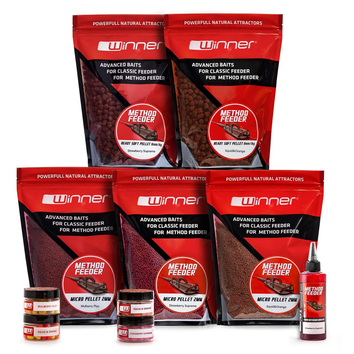 Tandem Baits Winner Set di 10 Weekend Method Feeder Fishing Box Fruit | Soft Pellet 8mm | Micro Pellet 2mm | Diffusion Turbo Dip | Fluo Wafters | Pop Up 8mm | Carpfishing Pesche Pesca Accessori Set Up