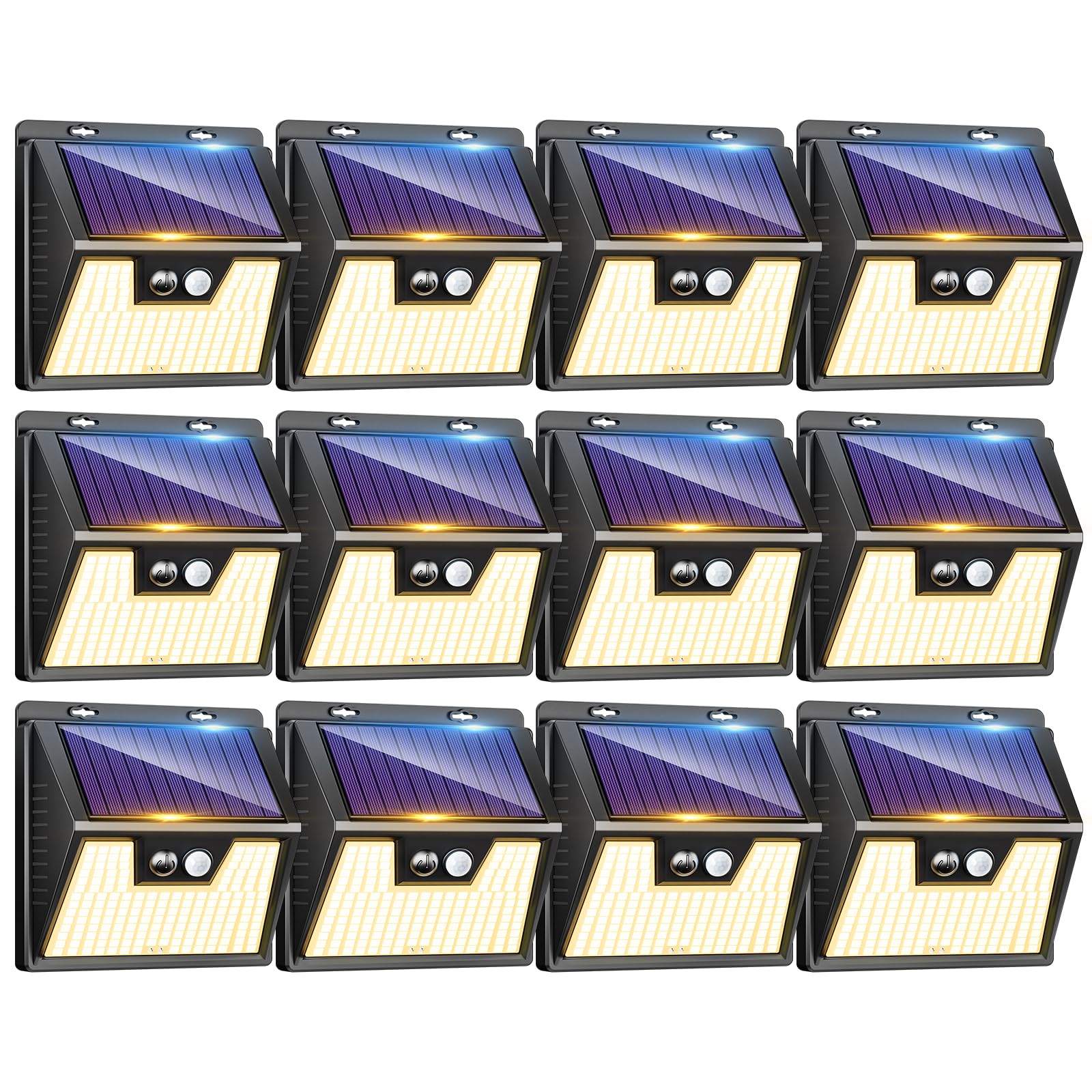 - 12 Ultra Luminose Pezzi Luce Solare Led Esterno: La faretto led da esterno con sensore di movimento è composta da 176 LED ad alta rifrazione e da un pannello solare recentemente aggiornato, che garantisce una maggiore velocità di ricarica, una maggiore efficienza energetica, tempi di ricarica ridotti, un'illuminazione più brillante e una migliore visibilità notturna. Fornisce un'illuminazione notturna adeguata per pedoni e animali domestici, migliorando così la sicurezza