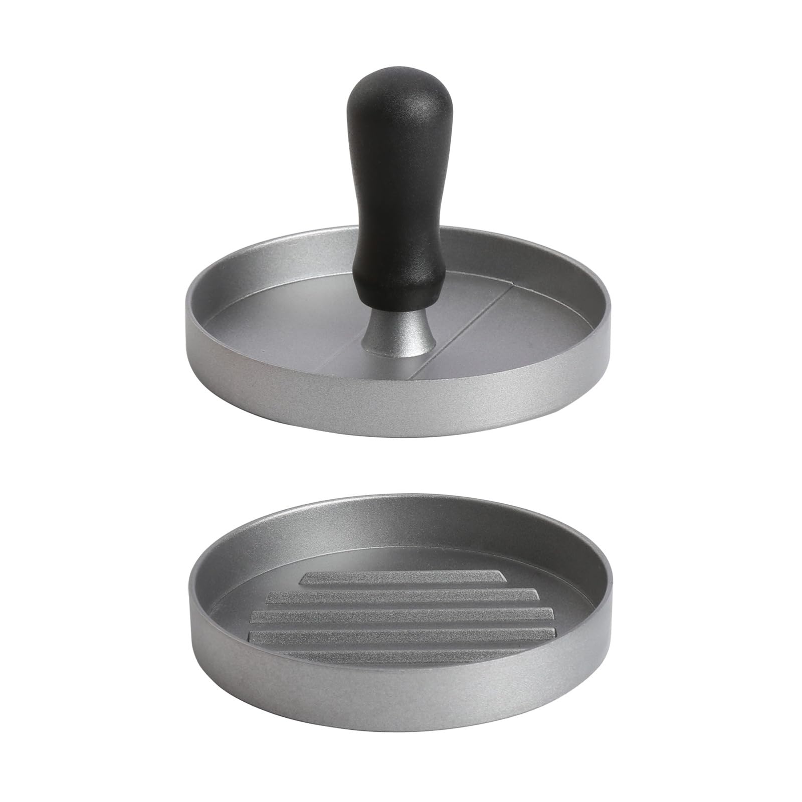 - Realizzata in robusto alluminio pressofuso con rivestimento antiaderente e manico in plastica, garantisce una facile rimozione degli hamburger.