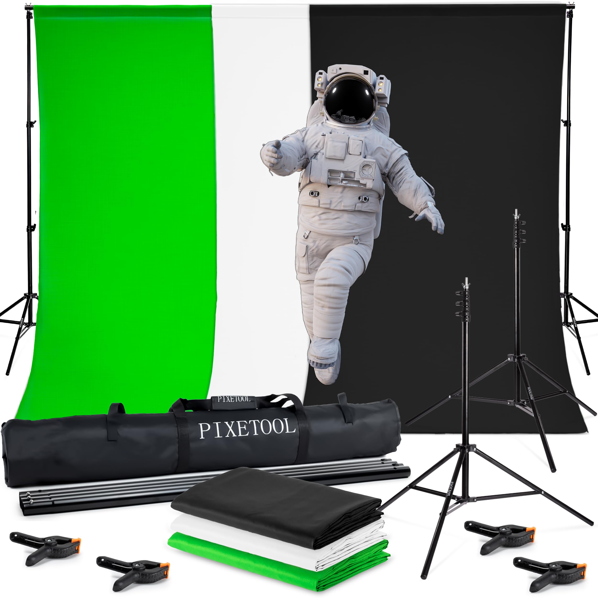 - 📦 SET COMPLETO - Il pacchetto Pixetool contiene tutto ciò di cui hai bisogno. Include tre panni in mussola di alta qualità (verde, nero, bianco), un supporto in alluminio regolabile, 4 pinze e una borsa di lusso che puoi portare ovunque.