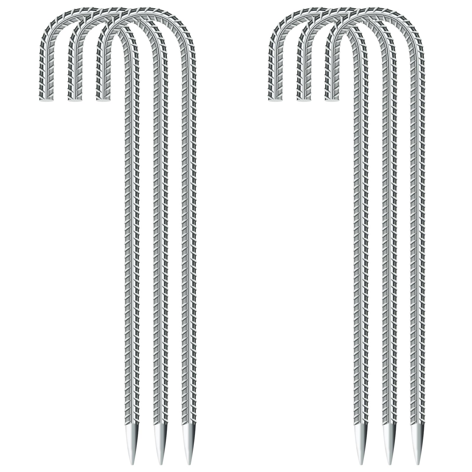 - Ancoraggio a terra a forma di J-shaped, dimensioni: argento, lato lungo: 30 cm, picchetto corto: 6 cm, larghezza a J: 4 cm, diametro: 1 cm, peso: 160 g x 6;