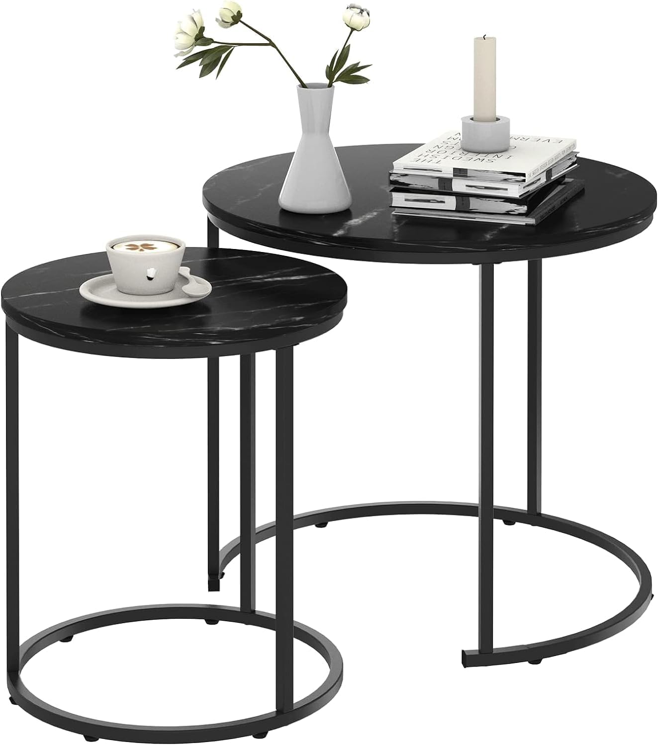 - Design salvaspazio: questo set di tavolo rotondo da soggiorno offre una soluzione moderna e salvaspazio per il vostro soggiorno. Possono essere usati sia insieme che separatamente, come ne hai bisogno. Questo tavolino da caffè set da 2 è compatto, leggero e facile da spostare.