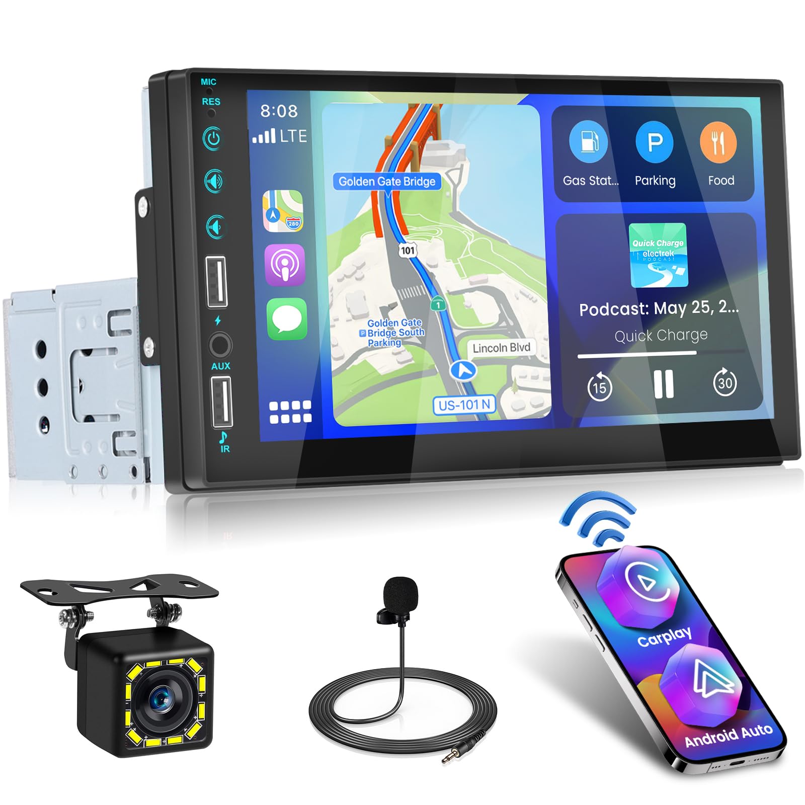 - 【7 pollici HD Schermo tattile】 Lo schermo tattile LCD da 7 pollici 1024*600 funziona in modo sensibile e offre una migliore esperienza visiva. Supporta impostazioni di retroilluminazione a sette colori. Le porte USB e AUX offrono una varietà di opzioni per ascoltare musica e film in auto
