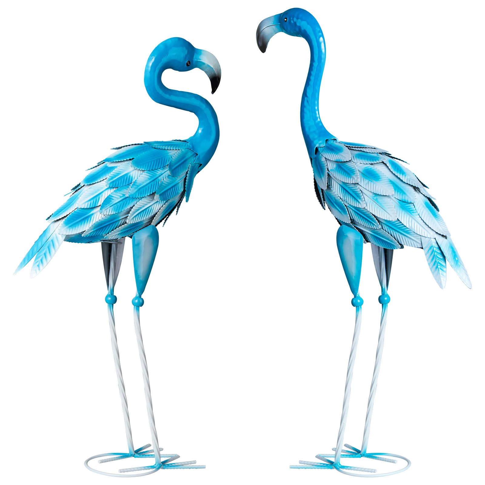 2 Statue Artistiche Fenicottero Blu in Metallo
