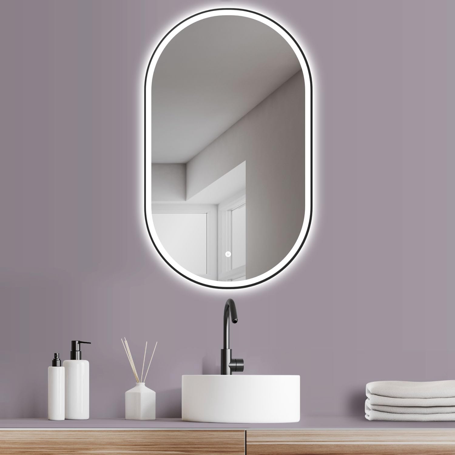 Hoko® Specchio da Parete Ovale LED 50x90cm Nero