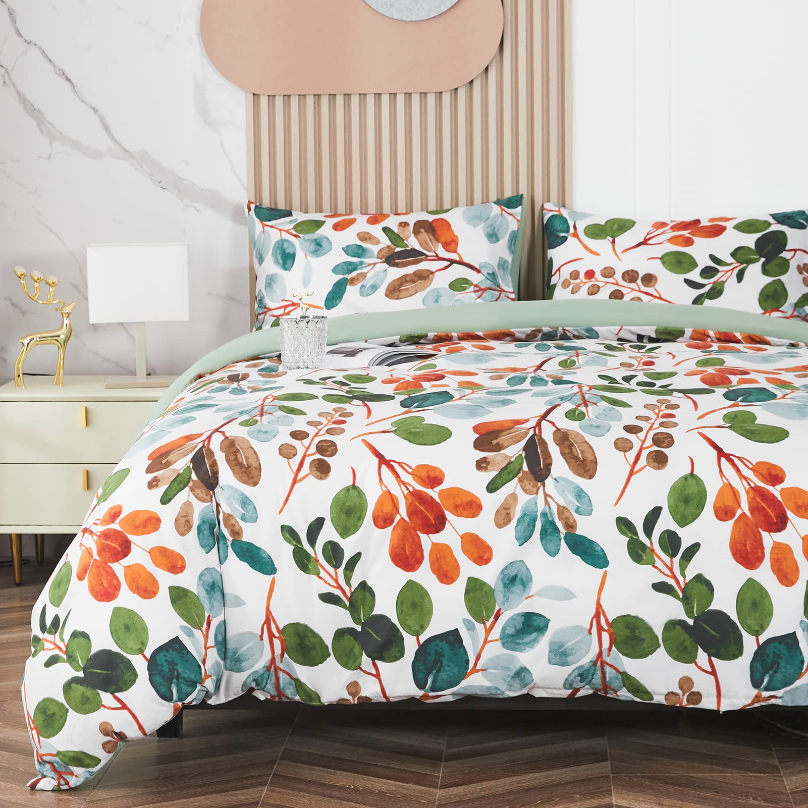 - Le foglie colorate e i fiori in stile pittura ad acquerello stampati su una collezione di copripiumini rustici decorano la tua camera da letto secondo la tua idea. ATTENZIONE: Il motivo della federa fa parte del copripiumino, è casuale.