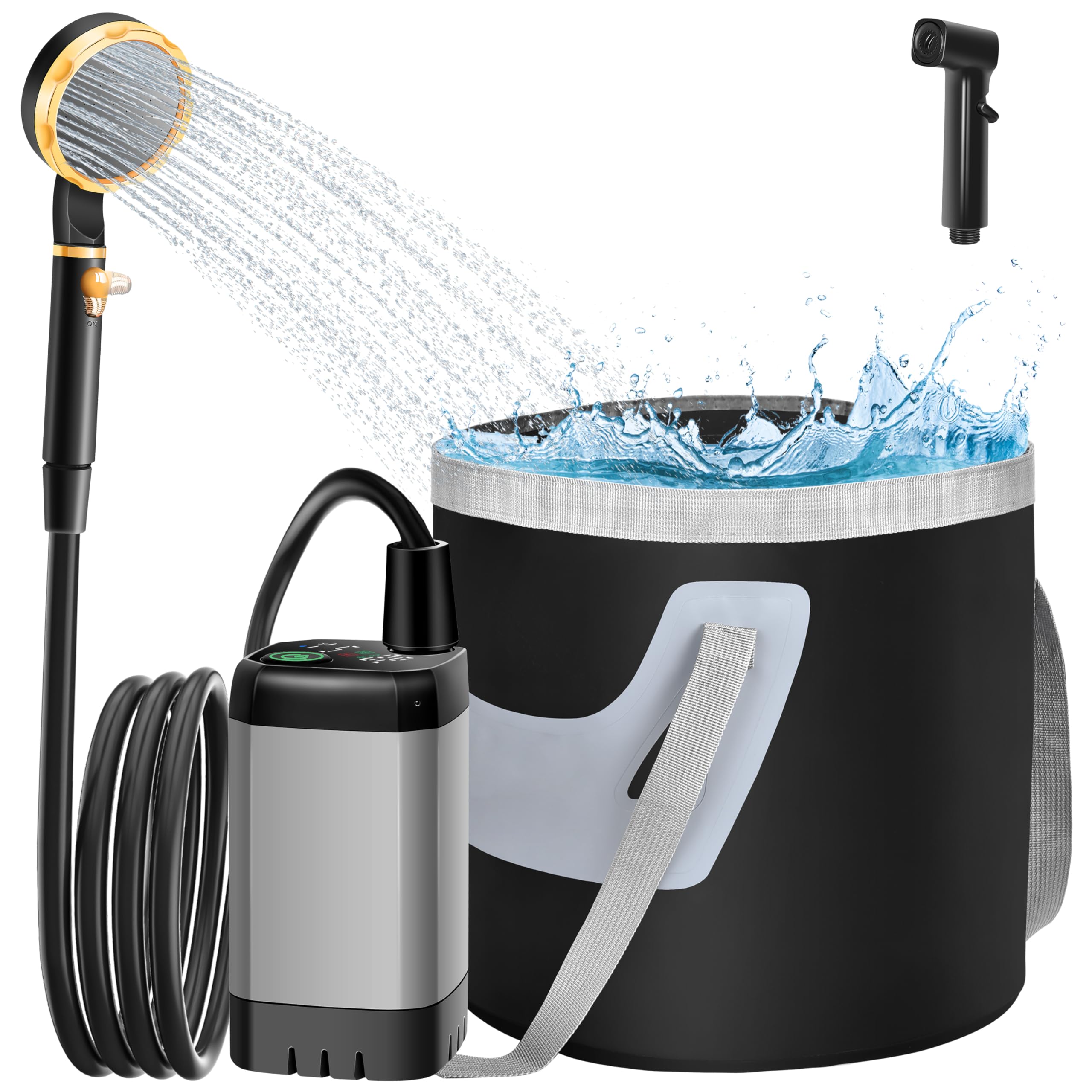 - La pompa doccia è progettata con una ventosa per rimanere stabile sul fondo del secchio pieghevole da 20L, leggero e resistente, ideale per l'uso esterno. Basta riempire il secchio con acqua e inserire la pompa per una doccia rinfrescante ovunque.