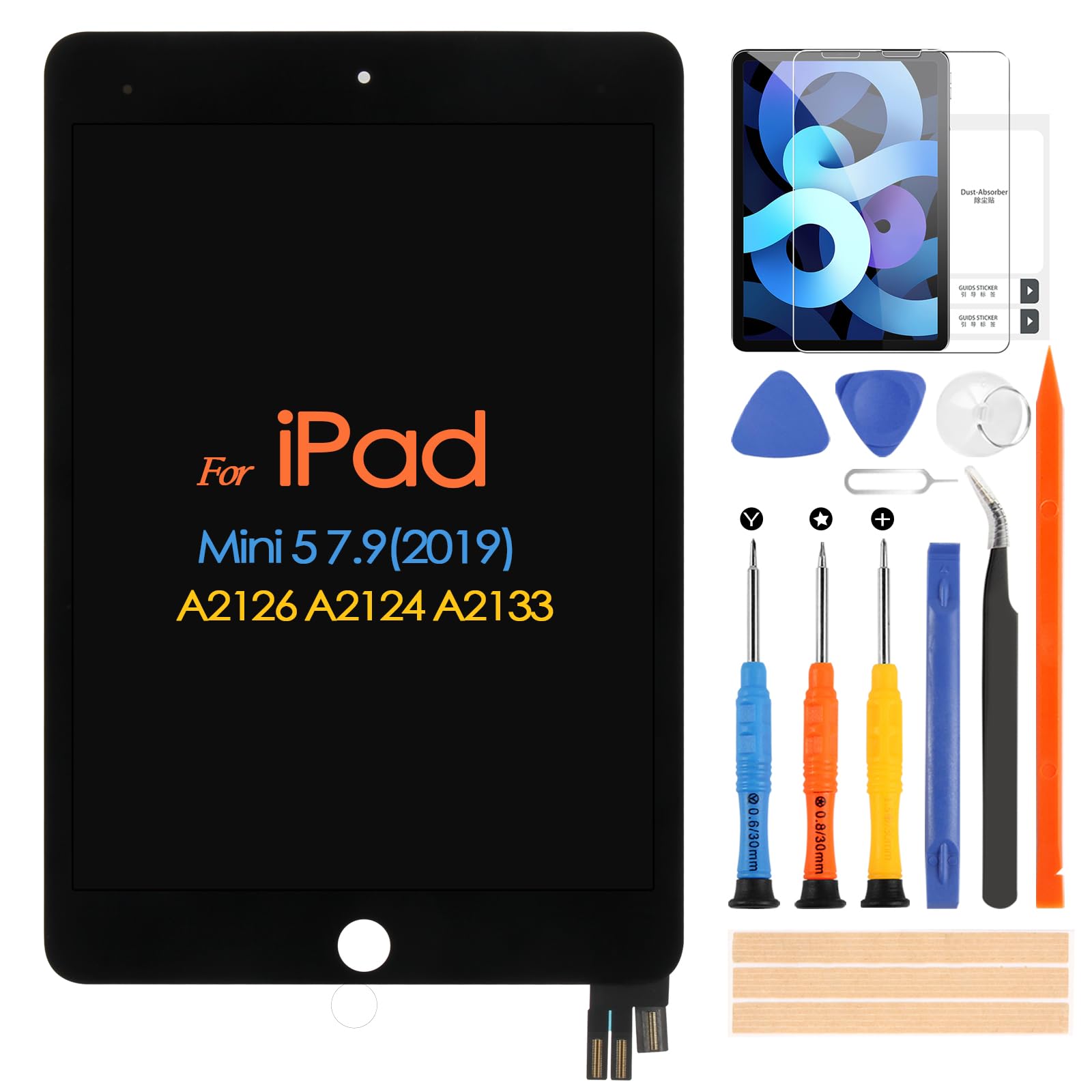 - 📱【LCD Schermo per iPad Mini 5】: La nostra sostituzione dello schermo per iPad Mini 5 è compatibile solo con schermo per iPad Mini 5 2019 A2126 A2124 A2133 7,9 pollici, assicurarsi che il modello del pad prima dell'acquisto.