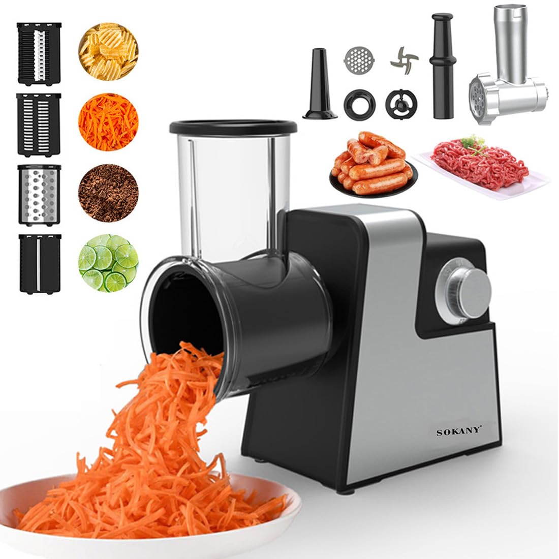 - [Mai più tritare a mano] Il prodotto è dotato di un potente motore da 1000W, con questa grattugia elettrica da cucina è possibile grattugiare e sminuzzare senza fatica verdure, frutta, noci, cioccolato e formaggio.