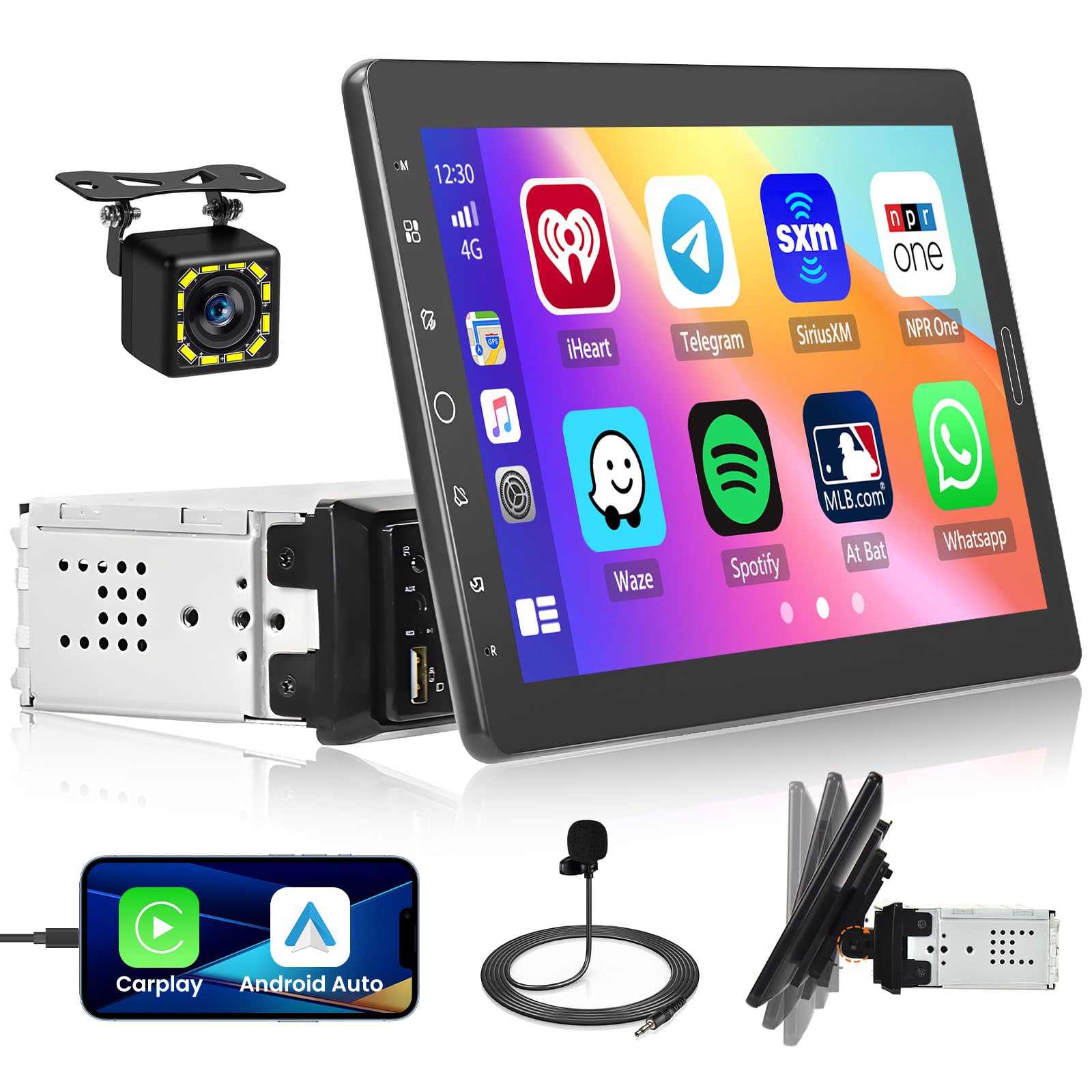 Autoradio 1 Din con Carplay Android Auto, Schermo 10.1 Pollici