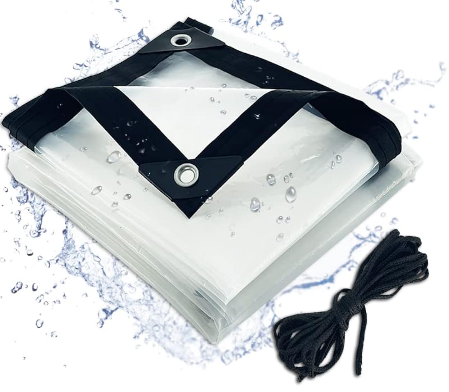 - L'installazione è semplice: ogni angolo del telone trasparente è dotato di fori in alluminio e le corde sono incluse nella confezione, facilitando il montaggio e lo smontaggio.